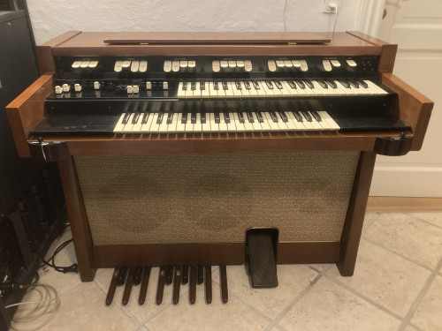 Dette orgel er et yderst flot og velbevaret eksemplar fra 1965. Der er monteret udgang til Leslie 760 eller lignende med 9-ben stik samt jackstik.