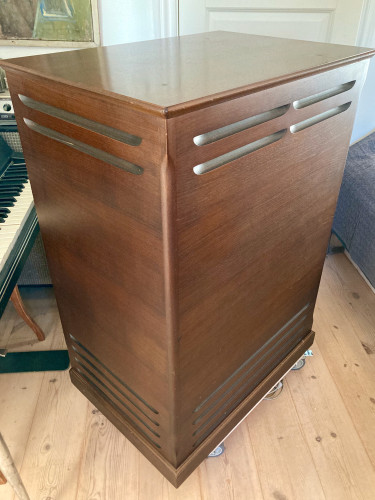 Leslie 147 er en af de mest populære Leslie'er med rørforstærker, da den med ubalanceret indgang umiddelbart kan tilsluttes til de fleste orgler. Den kan med en Leslie Preamp også anvendes med nye digitale orgelkloner. Dette eksemplar har et meget flot og velbevaret kabinet. Prisen er 12.500 kr.