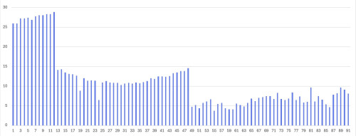 Det ses tydeligt, at niveauet falder fra tone nr. 49 op til nr. 91, som netop er de toner, der har kondensatorerne. På de dybere toner er der ingen kondensatorer. Virkningen af dette er, at orglet lyder mere uldent og uklart og meget tungt i bassen.